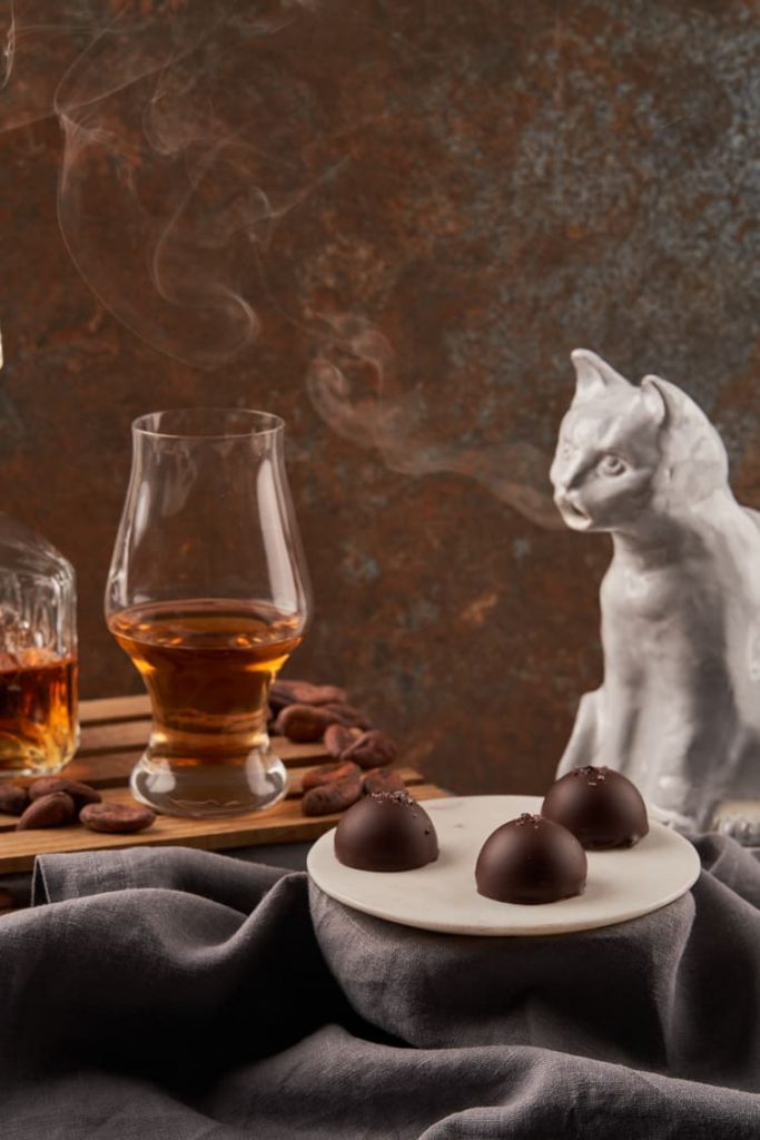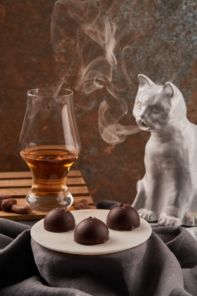 So sit back, relax, and enjoy the ultimate pairing of chocolate and whiskey with our sumptuous whiskey-filled bonbons.”